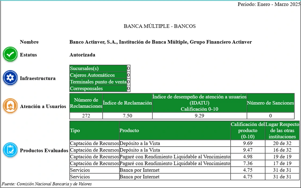 La siguiente información de los productos corresponde únicamente a las entidades financieras que integran a Grupo Financiero Actinver, para conocer la información de todo los sectores debe acceder al sitio: www.buro.gob.mx